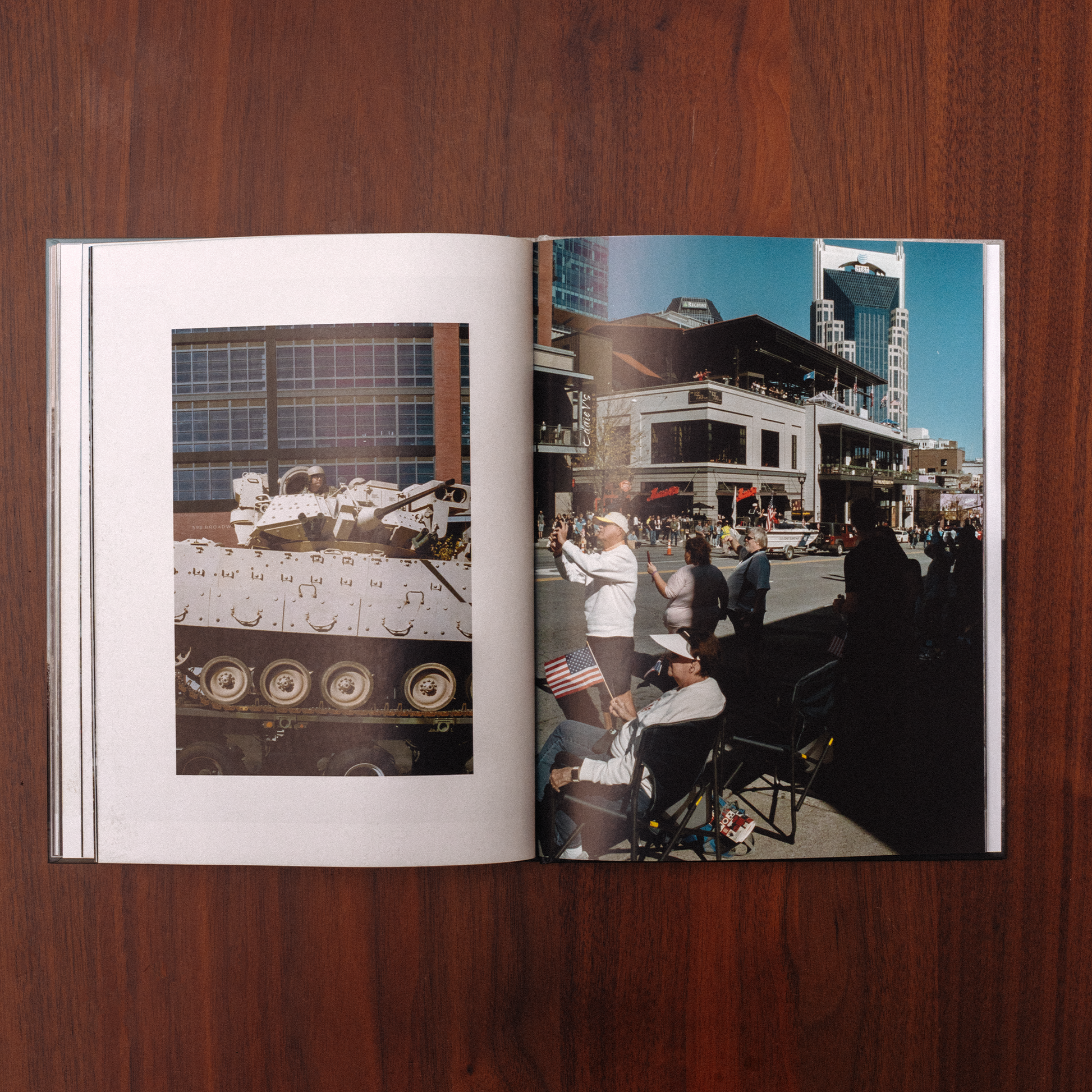 Une fanfare universitaire qui répète sur un parking avant de participer à un concours dans l’enceinte du Ford Field — Le regard dissimulé de ces deux agents des services secrets qui protègent la voiture de Kamala Harris — Cette femme au Pippin’s Tavern, les yeux levés vers l’écran diffusant CNN pour distinguer les résultats des élections — Une famille dans un moment précieux à l’intérieur du centre commercial d’Indianapolis, toutes ces images sont à découvrir dans mon premier livre, MIDWEST.